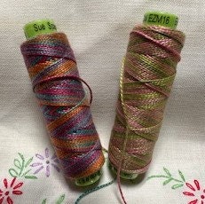 Thread pack contains (2) 70 yard spools of #8 Eleganza Pearl Cotton Sue Spargo variegated thread. EZM16