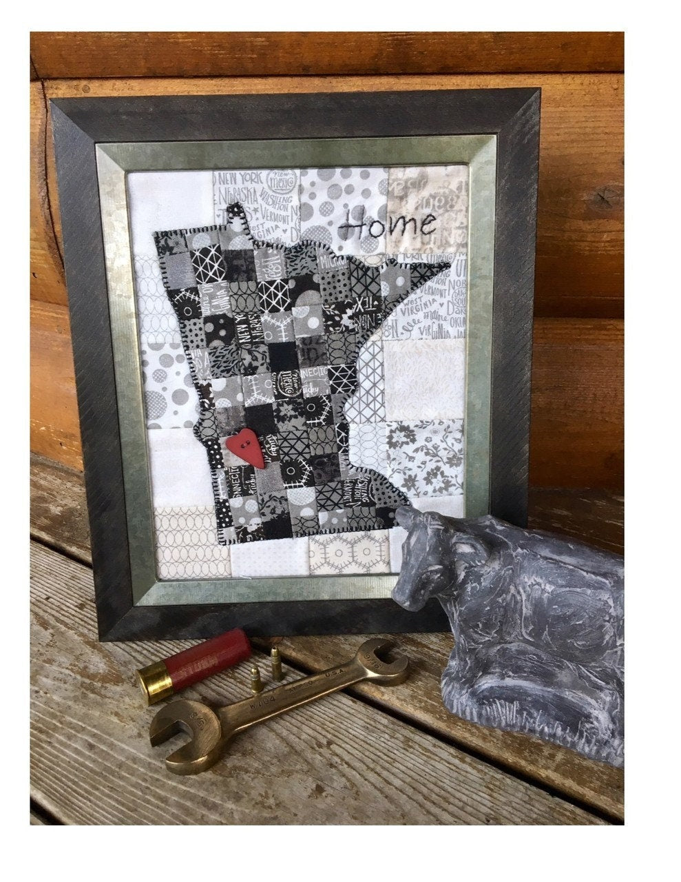 Pattern to create this trendy home project. Finishes to fit an 8 x 10 frame. Pattern includes template for MN, SD, and WI